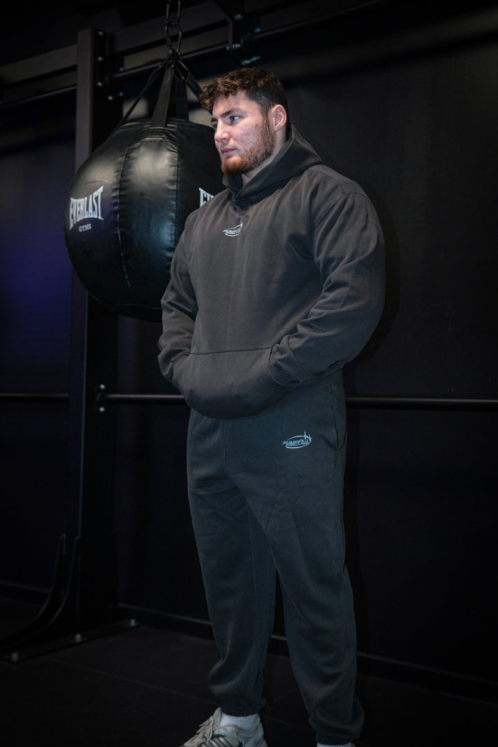 Featuring the Baby Blue and White Pump Club logo, these Black Faded Joggers are designed with a relaxed, modern silhouette for everyday comfort and versatility. Crafted from a mid-weight 320 GSM CVC fleece, these joggers deliver the ideal balance of softness, warmth, and durability—perfect for training, recovery, or daily wear. Garment dyed for a sleek, all-black faded finish, they offer a premium, worn-in feel straight out of the box.